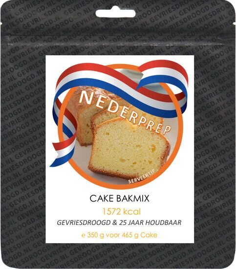 25 jaar houdbare noodrantsoen cake bakmix voor 1 cake van circa 15 plakken van 30 gram. Even water toevoegen en bakken maar!