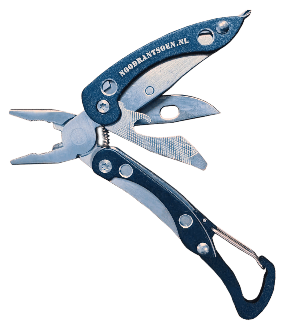 - 8-in-1 mini-multitool zakmes met tang, kniptang, mes, flesopener, Kruiskop schroevendraaier, platte schroevendraaier, nagelvijl, karabijnhaak