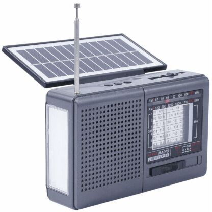 #1 noodradio met dynamo + 2 zonnepanelen + 2 lampen + mega accu + FM/AM