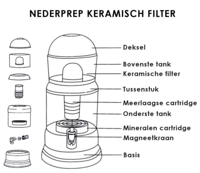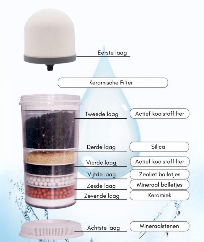 - Filtert 99,99% van alle bacteriën, virussen, parasieten, micro-plastics en chemicaliën uit het water