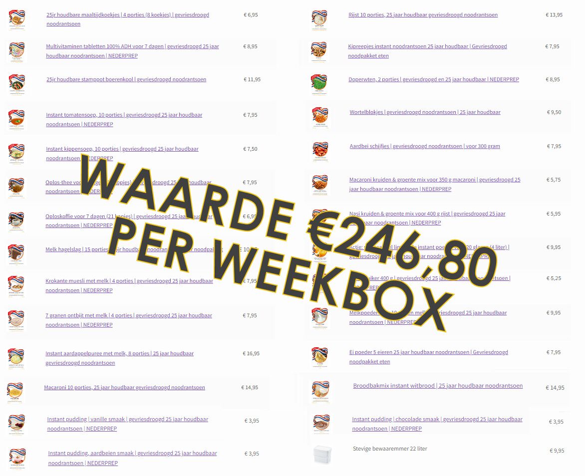 4 complete luxe NL noodrantsoen weekboxen, goed voor 1 maand!